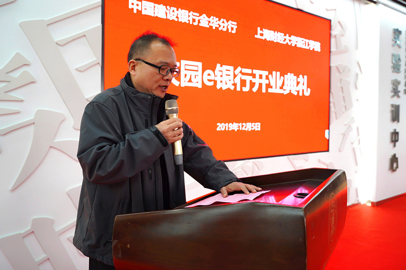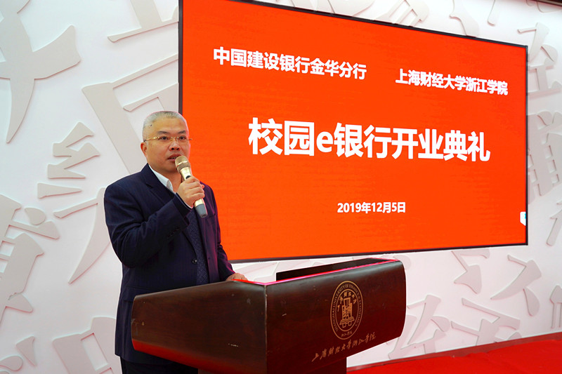 上海财经大学浙江学院院长马洪在致辞中代表上海财经大学浙江学院感谢建行一直以来的支持。上海财经大学浙江学院“校园e银行”是学院与中国建设银行金华分行校企合作,推进应用型本科建设人才培养工作的重要项目之一。在校内设立大学生金融创新实践基地也是对校企合作的全新探索。由在校生担任“校园e银行”行长和客户经理,参与银行经营管理的社会实践成长平台,真正把金融服务融入校园生态圈,将对推进企业深度参与商科人才培养模式改革具有重要的意义。希望同学们能在“校园e银行”实践学习中获得商业银行业务知识,提升管理能力、营销能力和团队合作能力,增强就业竞争力。学院将与中国建设银行金华分行资源共享、优势互补、互利共赢,为打造更广阔的产教融合发展平台而不懈努力!