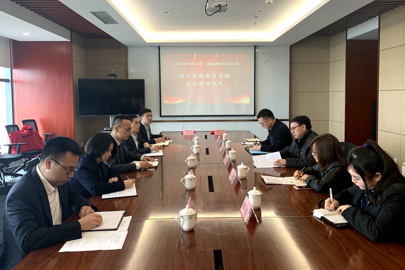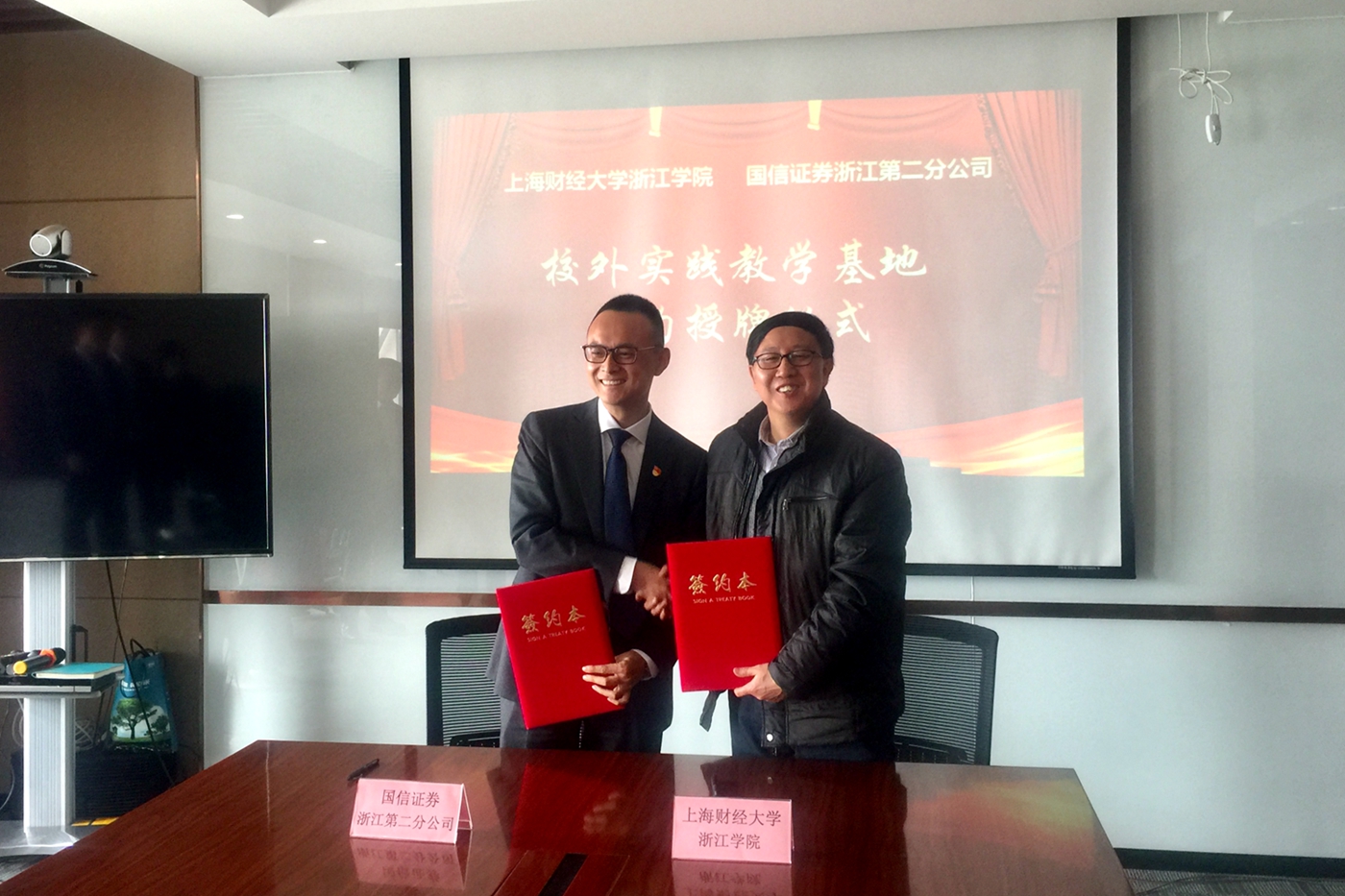 3月28日,学院在国信证券股份有限公司浙江第二分公司举行校外实践教学基地签约授牌仪式。国信证券股份有限公司浙江第二分公司吕宁、项光桢、靳卫卫、李帅、项铖彬,学院副院长邱风,朱艳、李健、楼心韵等老师参加签约授牌仪式。