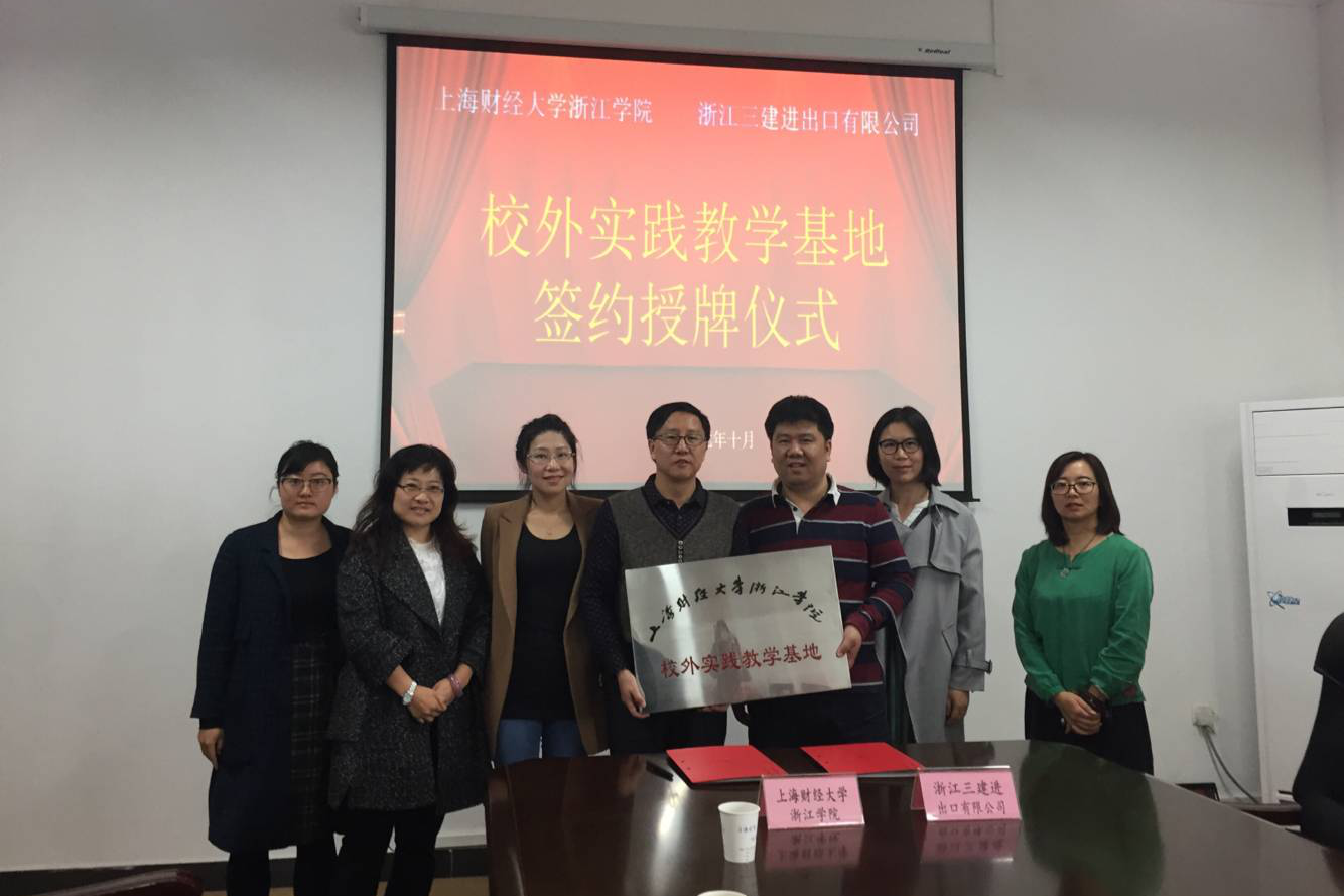 10月20日下午,我院与浙江三建进出口有限公司校外实践教学基地签约授牌仪式举行。浙江三建进出口有限公司董事长兼总经理傅剑波、总经理助理王晶,学院副院长邱风、实践教学中心与工商管理系负责人及教师代表参加仪式。