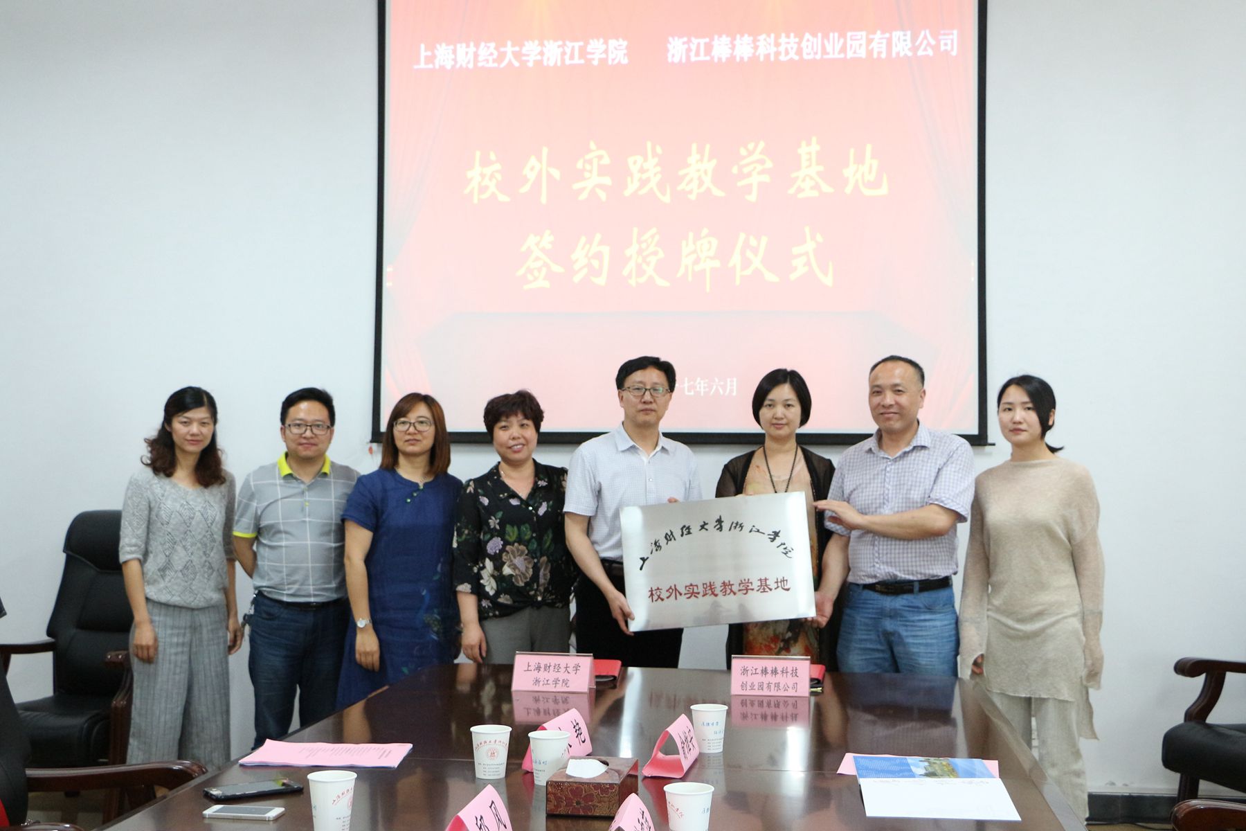 6月7日下午,我院与浙江棒棒科技创业园有限公司举行校外实践教学基地签约授牌仪式。浙江棒棒科技创业园有限公司董事长陈雪萍、总经理俞维安、办公室主任余娜,上海财经大学浙江学院教务长邱风,实践教学中心、外语系负责人以及外语系教师代表参加仪式。