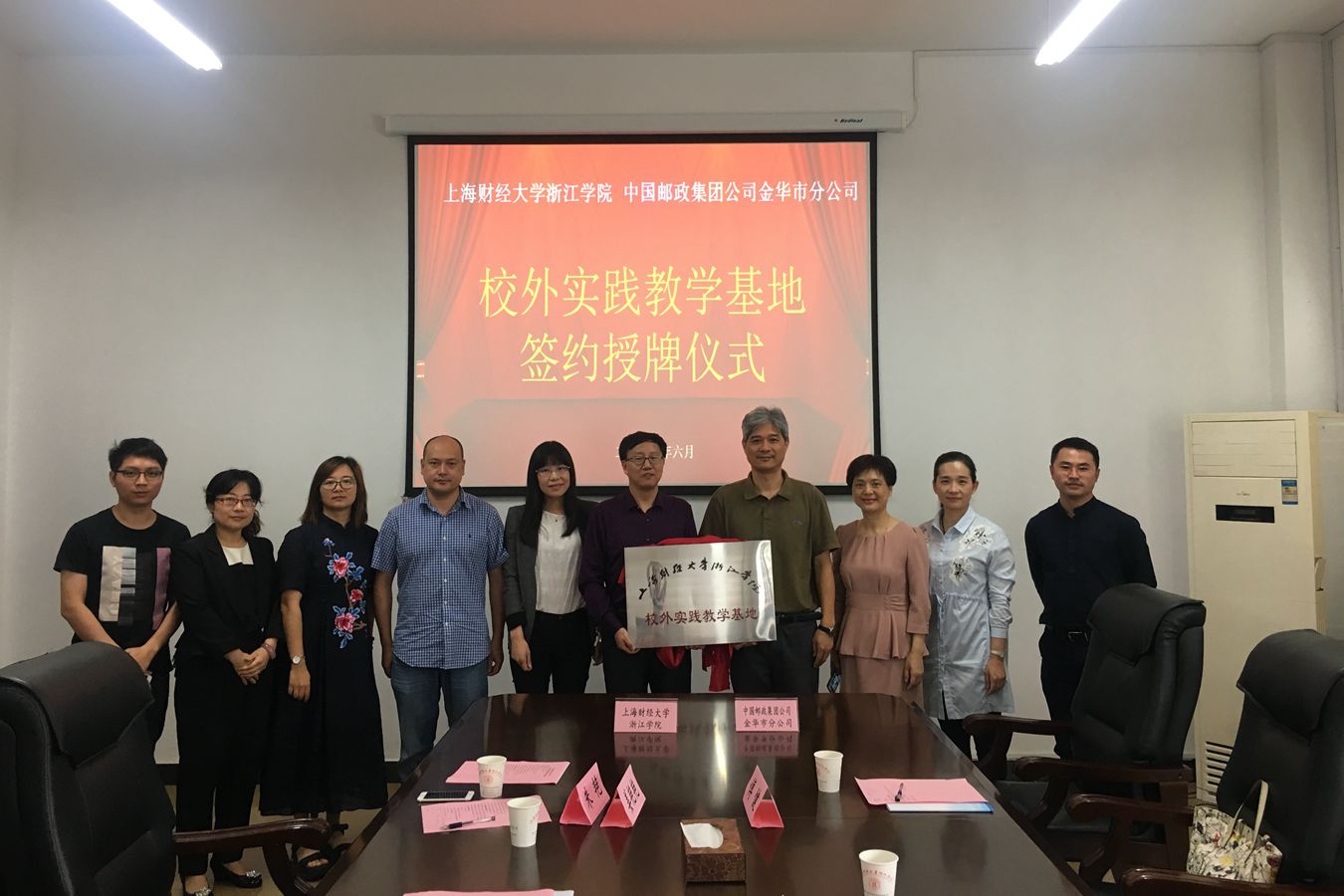 6月16日上午,我院与中国邮政集团公司金华市分公司举行校外实践教学基地签约授牌仪式。中国邮政集团公司金华市分公司党委书记、总经理滕伟建及办公室、人力资源部、金融局负责人,上海财经大学浙江学院教务长邱风及实践教学中心、工商管理系负责人、教师代表参加仪式。