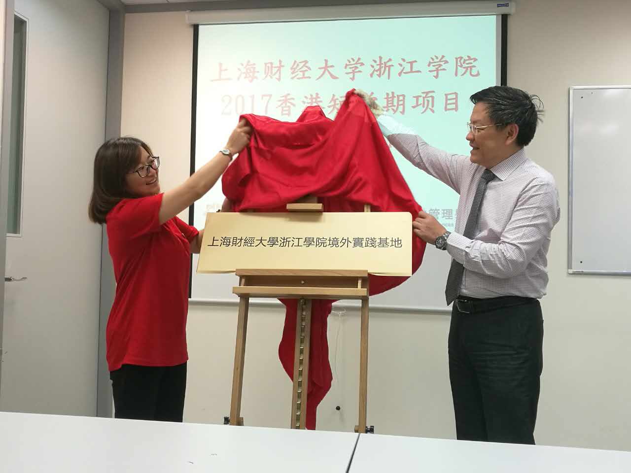 近日,我院首个境外实践基地在香港金融管理学院正式挂牌。香港金融管理学院院长、教师及我院参加香港短学期实习的全体师生参加了揭牌仪式。香港金融管理学院助理总裁、副院长钱锵龙与我院实践教学中心主任朱艳共同为基地揭牌。