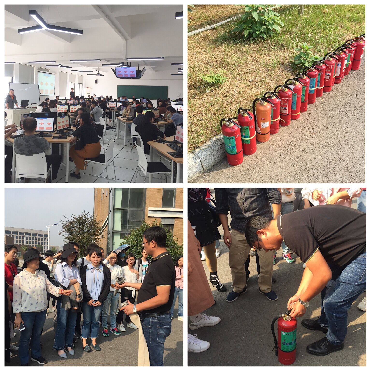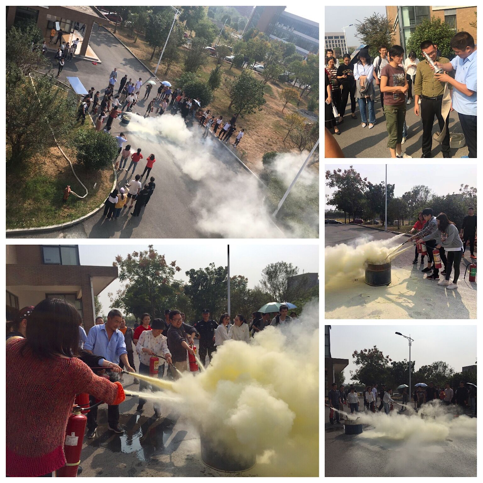 培训结束后,在保卫处人员的示范和指导下,大家展开了现场灭火演练。师生们热情积极,态度认真,动作规范,按照灭火步骤和方法迅速扑灭火源,快速掌握了灭火技能。