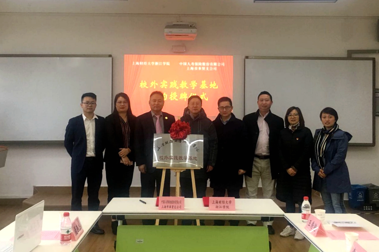 12月10日下午,我院与中国人寿保险股份有限公司上海市奉贤支公司举行校外实践教学基地签约授牌仪式。中国人寿保险股份有限公司上海市奉贤支公司市场总监滕祝明、区域总监王芳、高级经理聂连杰,上海财经大学浙江学院副院长邱风及实践教学中心、金融系等相关部门负责人参加了签约仪式。