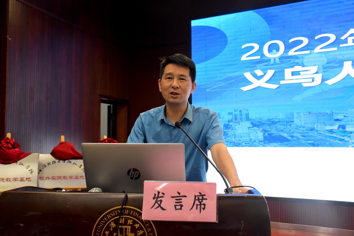 院长马洪致辞。马洪首先对热心支持学院学生实习就业工作的各企事业单位表示感谢和热烈欢迎。马洪从学院发展历程、专业设置、人才培养目标、毕业生就业等方面介绍了学院办学特色。马洪表示,学院与义乌人才合作持续加强,今后将进一步搭建合作育人平台、建立良性互动机制,充分发挥校地、校企合作优势。希望通过本次对接活动,同学们能深入了解企业,把握机遇,选择适合自己的岗位,为金华的建设添砖加瓦。义乌市人社局副局长金昭非表示,将以此次活动为契机,与学院在人才培养、实践教学、社会服务等方面开展全方位合作,共同提高人才培养质量,拓宽就业渠道,扩大学生受益面,促进校企双方共同发展,互利共赢。义乌市人才管理服务中心主任吴群伟现场推介义乌人才政策环境,以丰厚的政策礼包吸引同学们选择义乌、留在义乌、融入义乌。