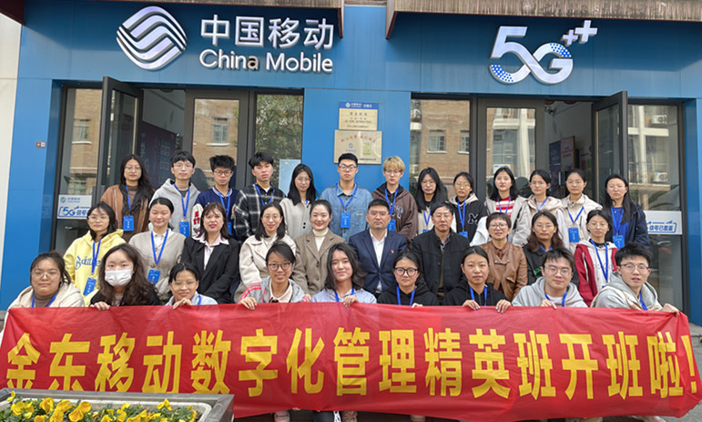 3月16日中午,金东移动数字化管理精英班开班仪式在校内移动营业厅顺利举行。副院长邱风,实践教学中心、校企合作处负责人朱艳,中国移动通信集团浙江有限公司金东分公司党支部书记、总经理楼伟锋和相关人员,金东移动数字化管理精英班全体学员参加本次开班仪式。