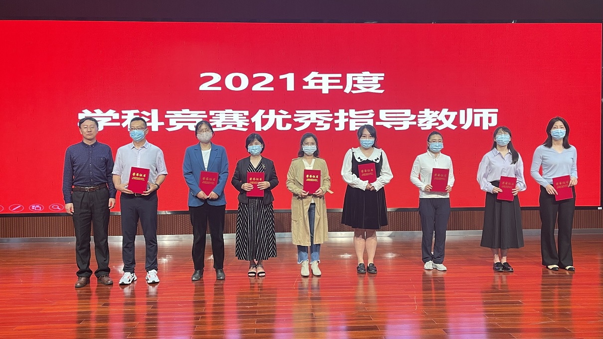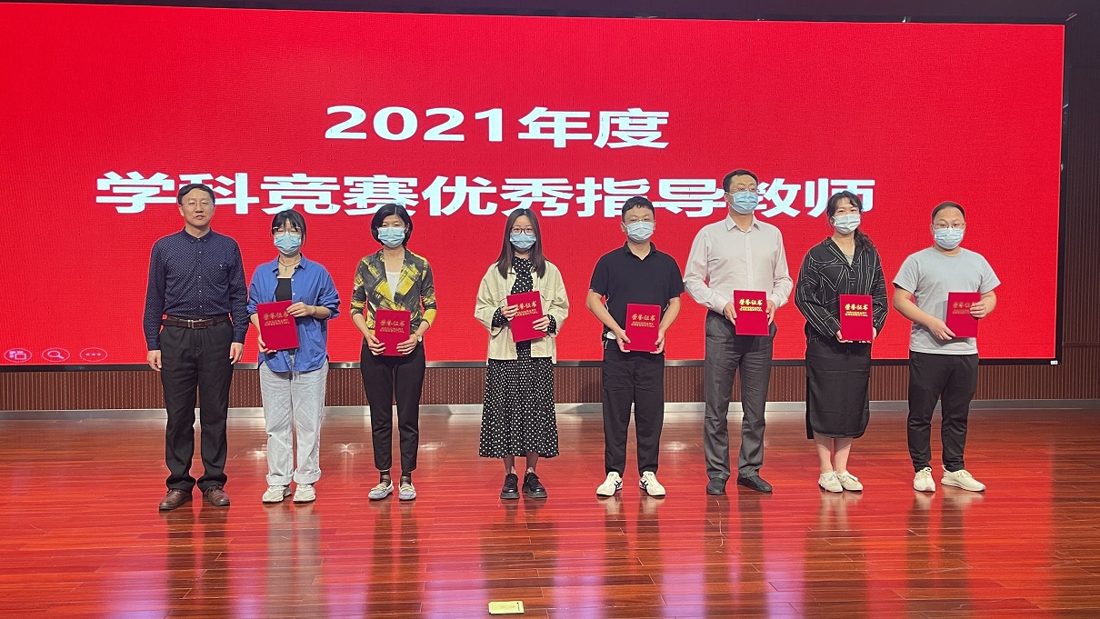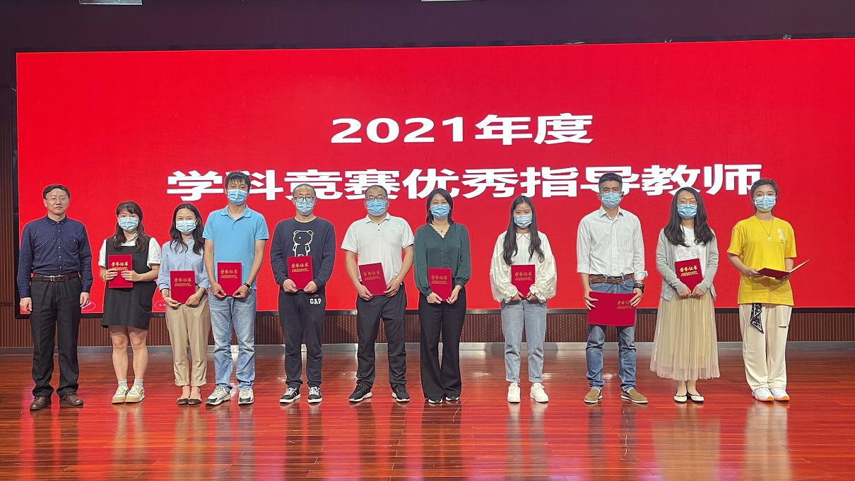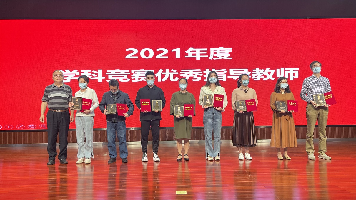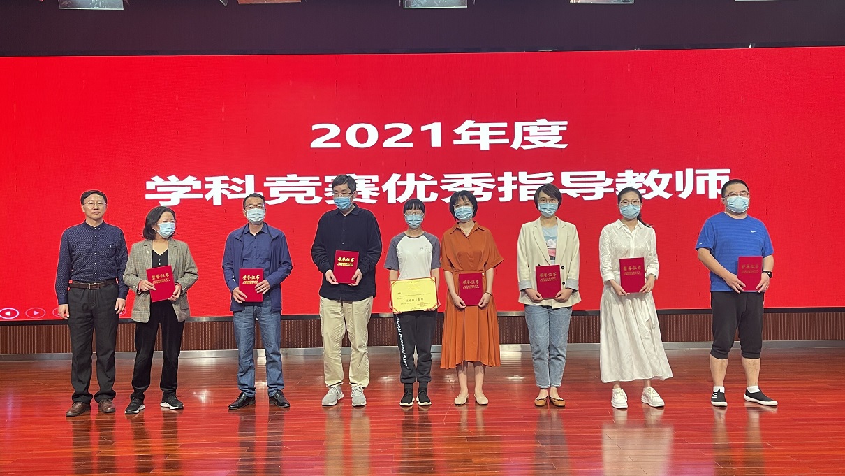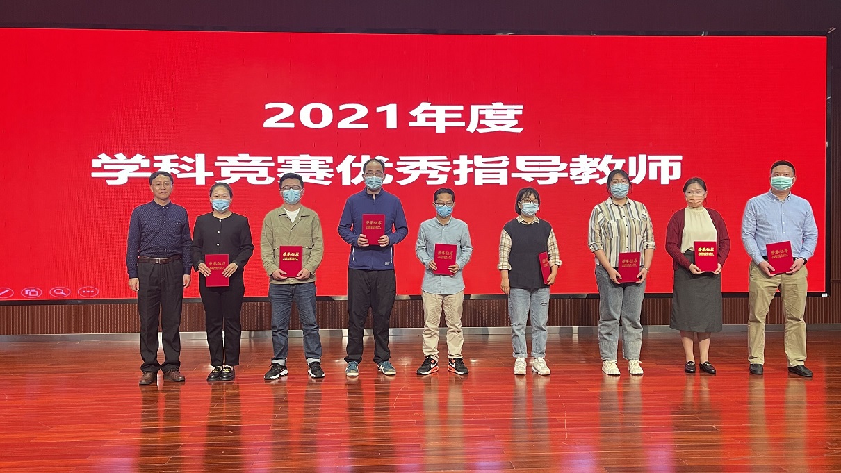 会上,邱风宣读了《上海财经大学浙江学院关于表彰2021年度学科竞赛最佳组织单位、优秀指导教师的通报》,马洪和邱风为优秀指导教师和最佳组织单位颁奖。