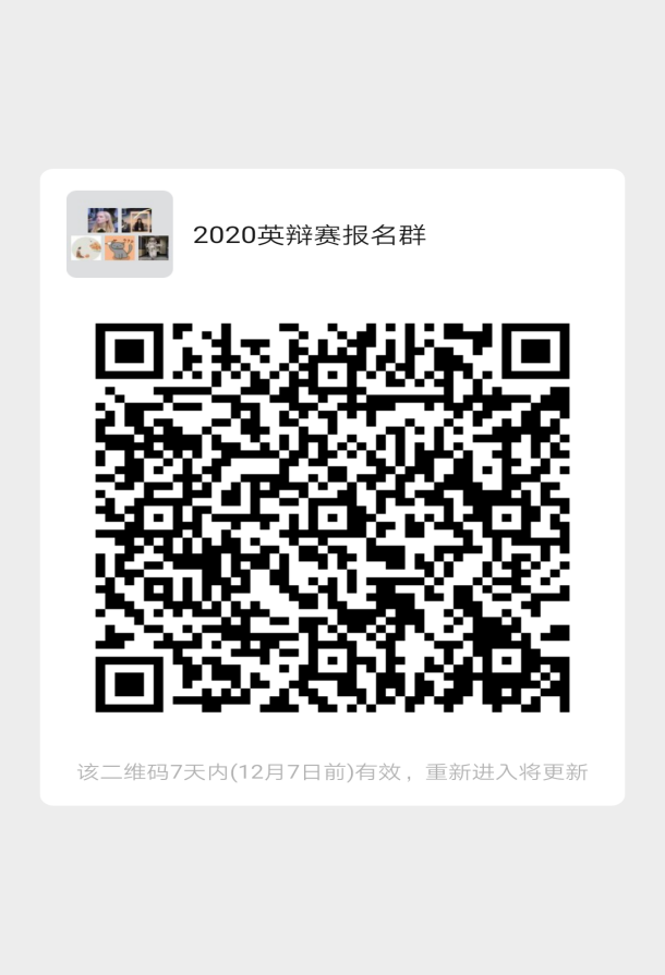 报名方式:有意向报名参赛的同学扫描下方二维码加入“英语辩论赛报名群”: